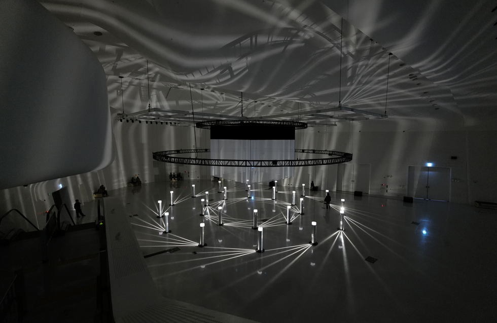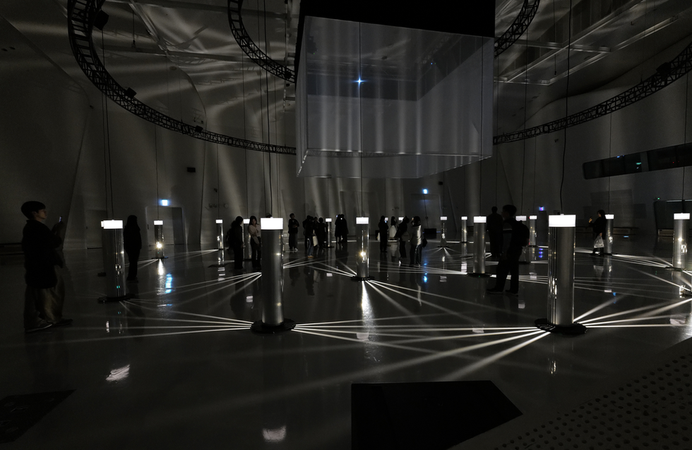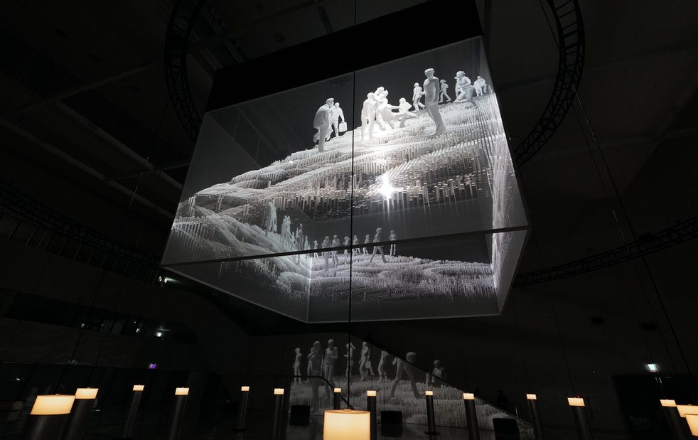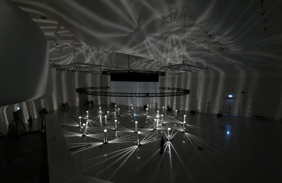 The large-scale installation envisions a multi-dimensional structure where light and darkness, complexity and possibility, fear and enlightenment collide—because it reflects the reality humanity faces in 2024, having created AI and opened Pandora's box. In Light Architecture, Audiences are invited to see themselves as both fragments of data within a vast neural network and active participants in shaping AI’s future.